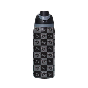 Bow Black Brand Checkerboard Stainless Steel Water Bottle
