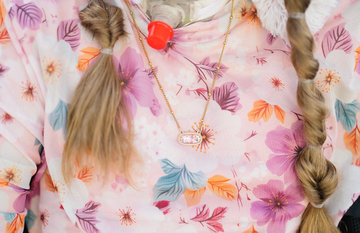 This 18-inch necklace features a delicate gold-plated bead chain that is lead- and nickel-free for comfortable everyday wear. The smooth resin focal piece adds a modern yet feminine touch, making it perfect for layering or wearing alone.Part of our meaningful Scarlett Floral Collection, this design was created in honor of Scarlett and the incredible impact she has had on our lives and community. After a water-related accident last year, Scarlett continues her rehabilitation journey away from home.