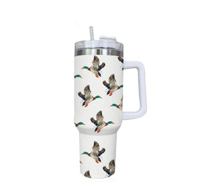 Tumblers are always a customer favorite. This 40oz stainless steel tumbler has a clear lid, reusable straw, and a sturdy handle for easy carrying. This is perfect for keeping your drinks cold or hot on the go.